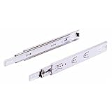 Telescopic precision full extension slide with pull-out stop and roll-out prevention. Load capacity 100 lbs (45kg). Drawer can be unlatched from the runner, making the drawer easy to remove and re-install. Smooth action and high lateral stability due to precision ball bearings. Minimum cabinet depth is at least 1/4" longer than the length of the slide/drawer box. Minimum side clearance is 1/2" + 1/32" on left and right side Material: Chromated Steel Sold in Pairs