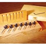 A tapered hole grips a screw along its entire length, giving exceptional thread "bite", and less chance of a stripped hole from today's power screw drivers. Set includes: 7 tapered bits (for the common screw sizes 5, 6, 7, 8, 9,10,12), seven matching countersink heads with adjustable stop collars, Allen key and wood storage box.